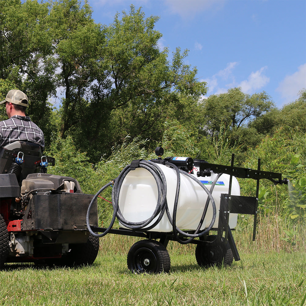Coverage: This tow-behind trailer sprayer is designed to handle up to 2 acre* of coverage in one sitting. Making it perfect for small to medium lawns, food plots and waterways with a zero-turn mower.