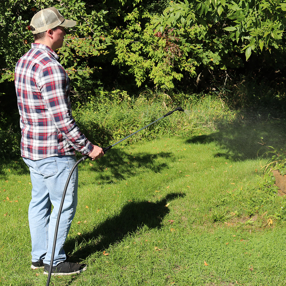 Coverage: Depending on the size of the diaphragm pump in use, spray up to 18 feet vertically and 20 feet horizontally. Perfect for low volume seasonal spot spraying weeds, trees, fence lines and other isolated items.