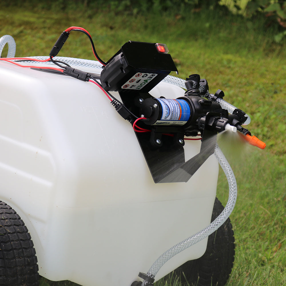 Includes a 12V remote switch wire harness for on/off control from your seat. Approved for Round-Up® and other herbicides and insecticides. Backed by a 2-year pump and component warranty. Designed for commercial and zero-turn mowers but can also be towed behind an ATV.