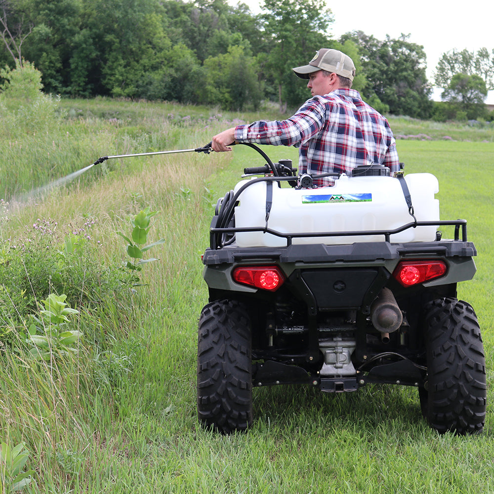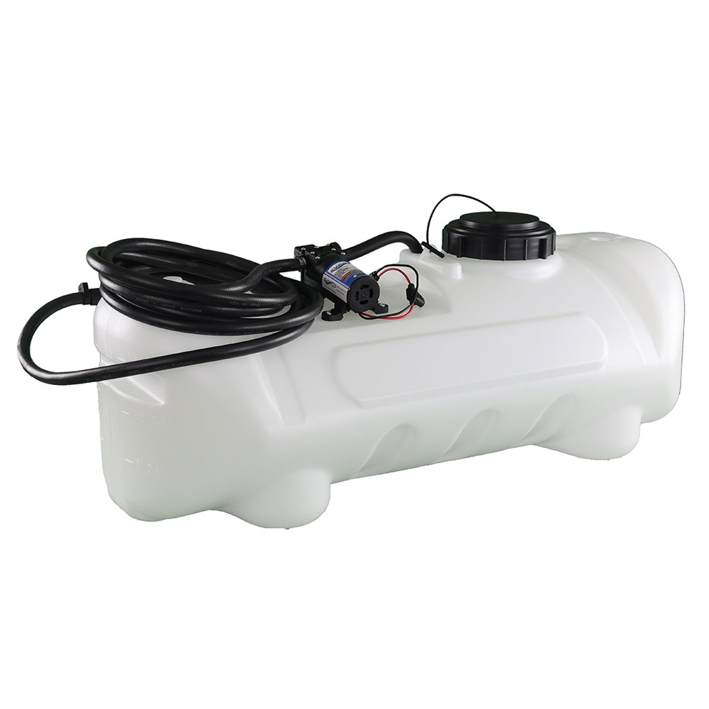 Sprayer Features: Be a sharpshooter with the 15-Gallon Spot Sprayer, featuring a reliable Everflo 1.0 GPM 12V on-demand diaphragm pump. The UV-resistant tank includes quick-grip handles for easy transport, a molded-in drain port for fast cleanup, and 15 feet of hose for reaching hard-to-access areas. Comes standard with a 12V wire harness with alligator clamp connection. Approved for use with Round-Up® and other agricultural herbicides and insecticides. Backed by a 2-year warranty on pump and components. Compatible with ATVs, UTVs, and other vehicles with minor modifications.