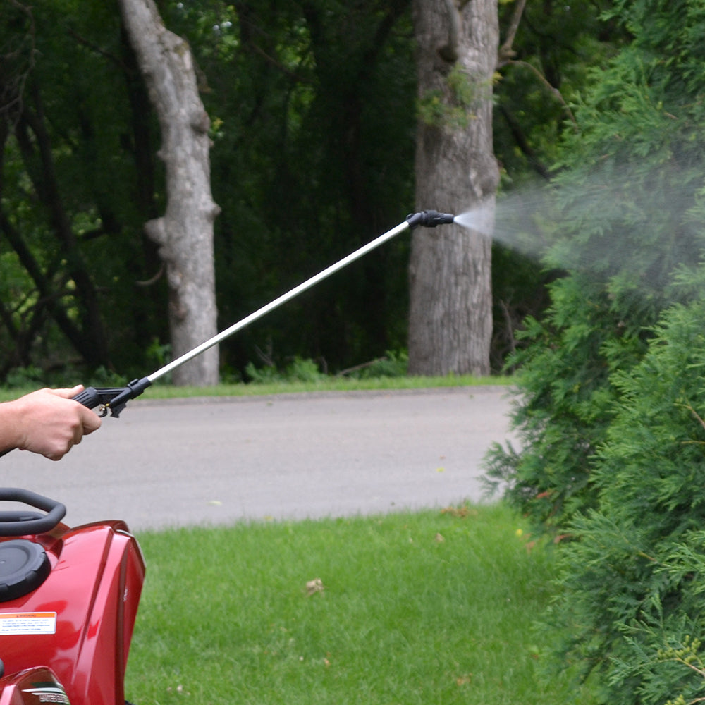 Includes a 3/8″ hose barb connection for easy assembly to spray gun hose. Approved for use with Round-Up® and other agricultural brand herbicides and insecticides. Not for use with pressure washers.