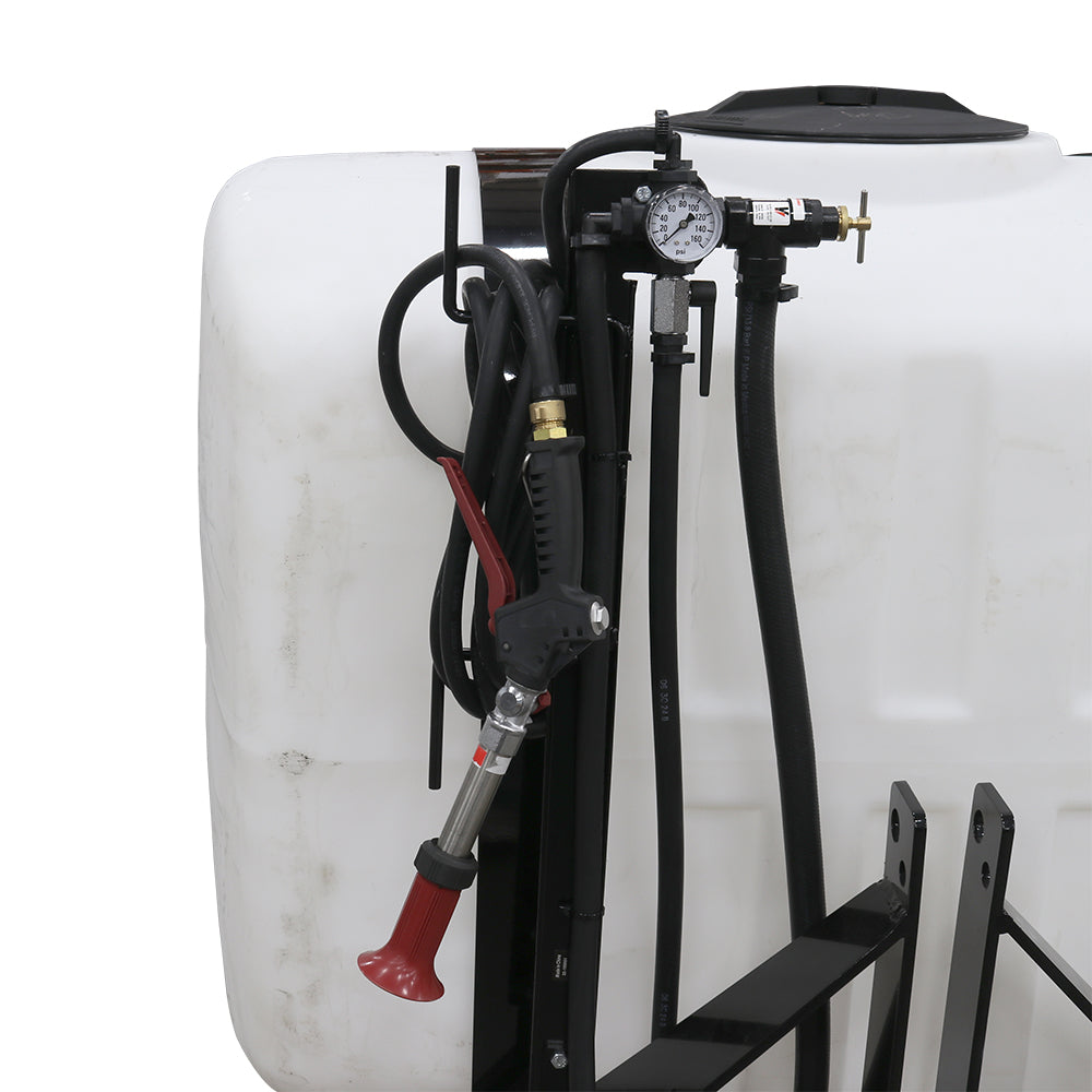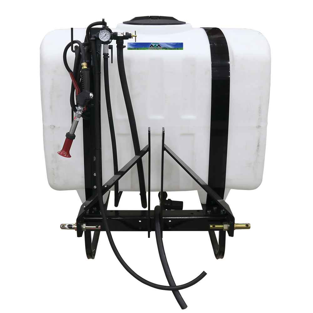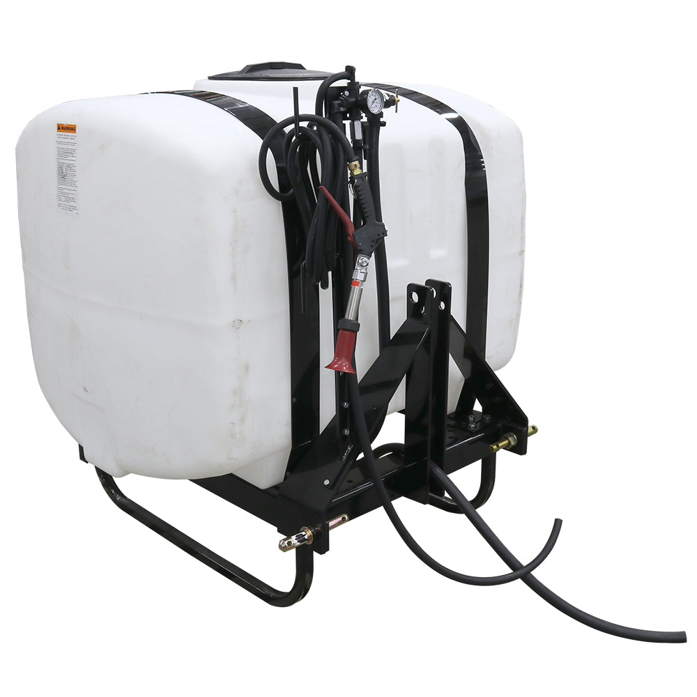 Sprayer Features: Take on the toughest jobs with the 200-Gallon Heavy-Duty 3-Point Sprayer. Powered by a PTO-driven pumping system, it features a 6-Roller Delavan Pump capable of delivering up to 20 GPM. A pressure gauge, adjustable regulator, and boom control lever give you full command over your spraying. The durable all-steel frame mounts to any category one tractor in minutes, while added conveniences include a 12” vented screw-on lid for fast filling, a 15’ rubber hose with organizing rack, and a sump for complete drainage. The UV-resistant tank is approved for use with Round-Up® and other agricultural herbicides and insecticides. Backed by a two-year warranty on pump and components.