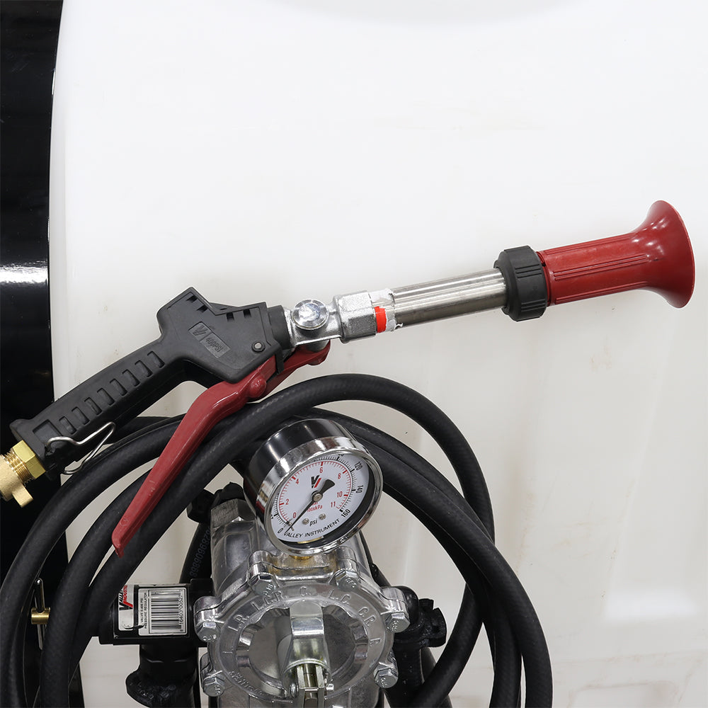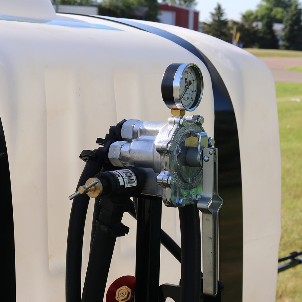 Fine-tune spray output with ease using the pressure regulator, dry-filled pressure gauge, and boom shut-off valve—all conveniently mounted for quick adjustments in the field.