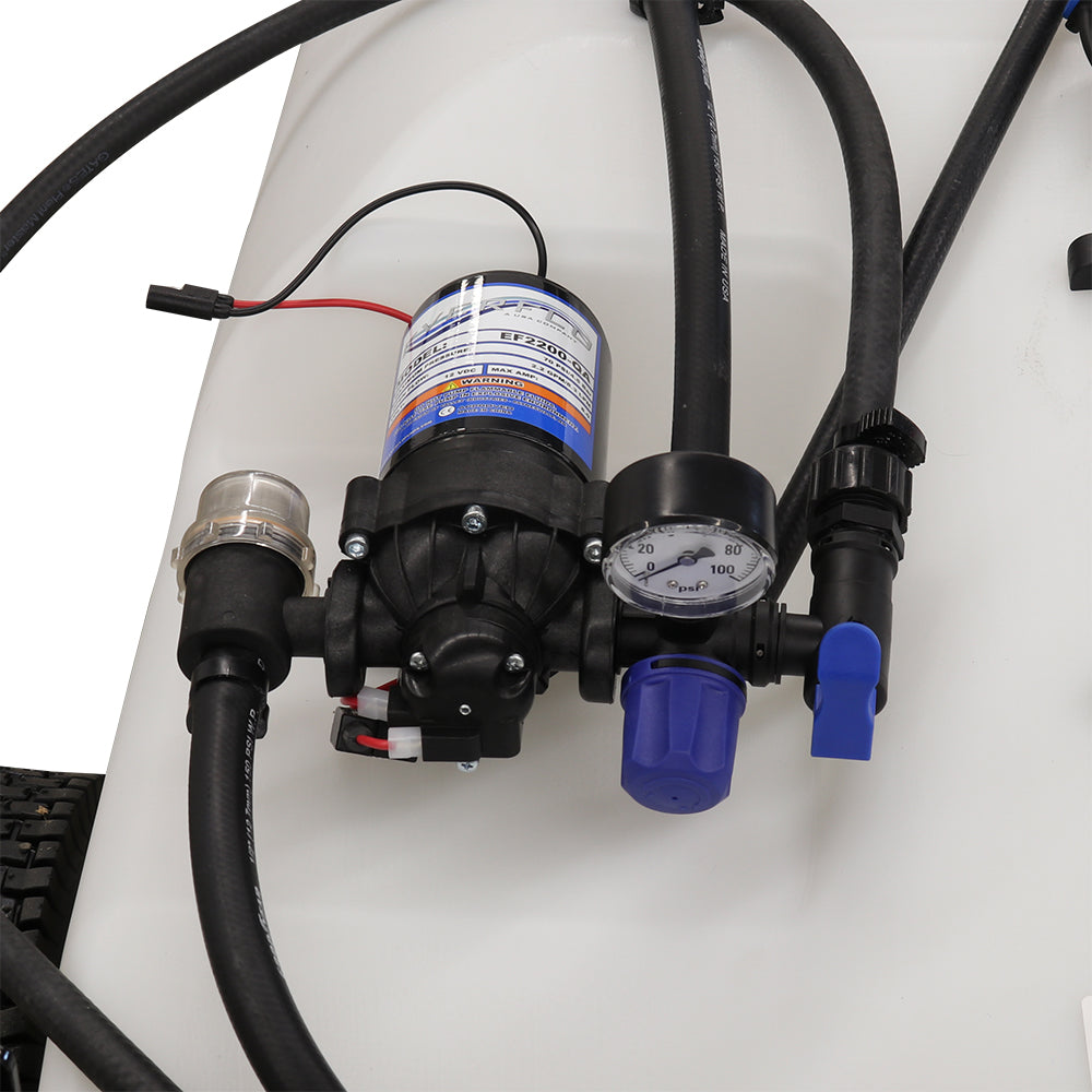 Powered by a reliable Everflo 12V on-demand diaphragm pump that delivers a steady 2.2 GPM flow rate with up to 70 PSI—no cycling or lag. Built with chemical-resistant components for long-lasting performance.