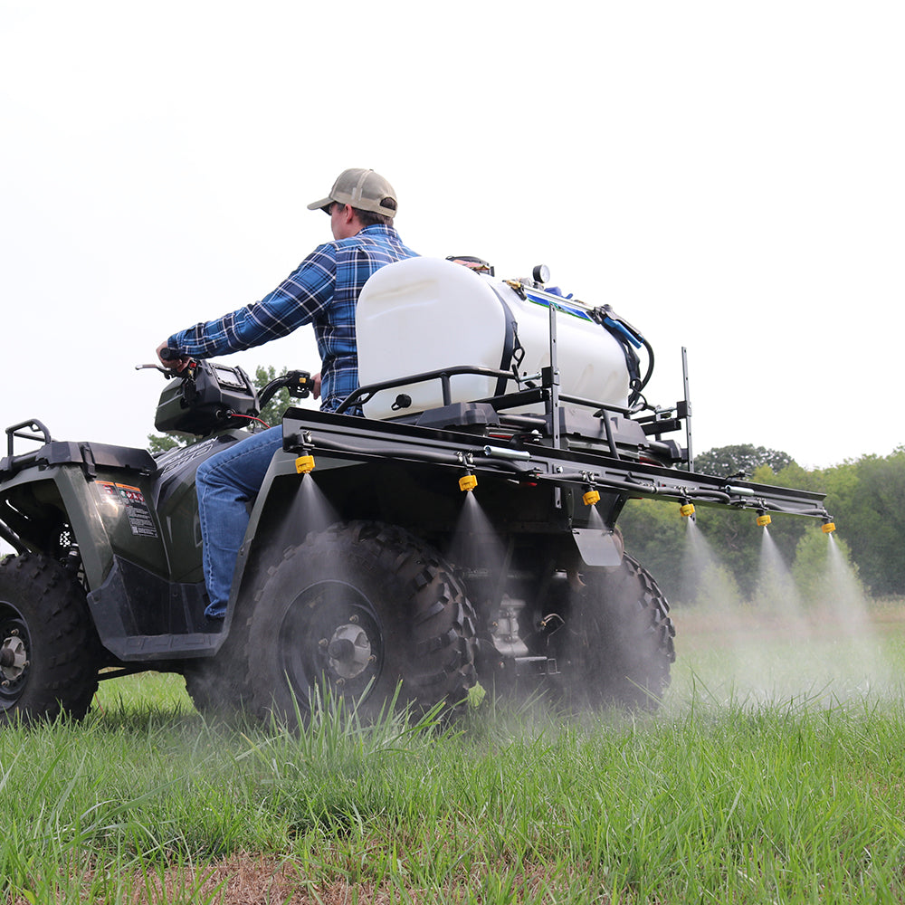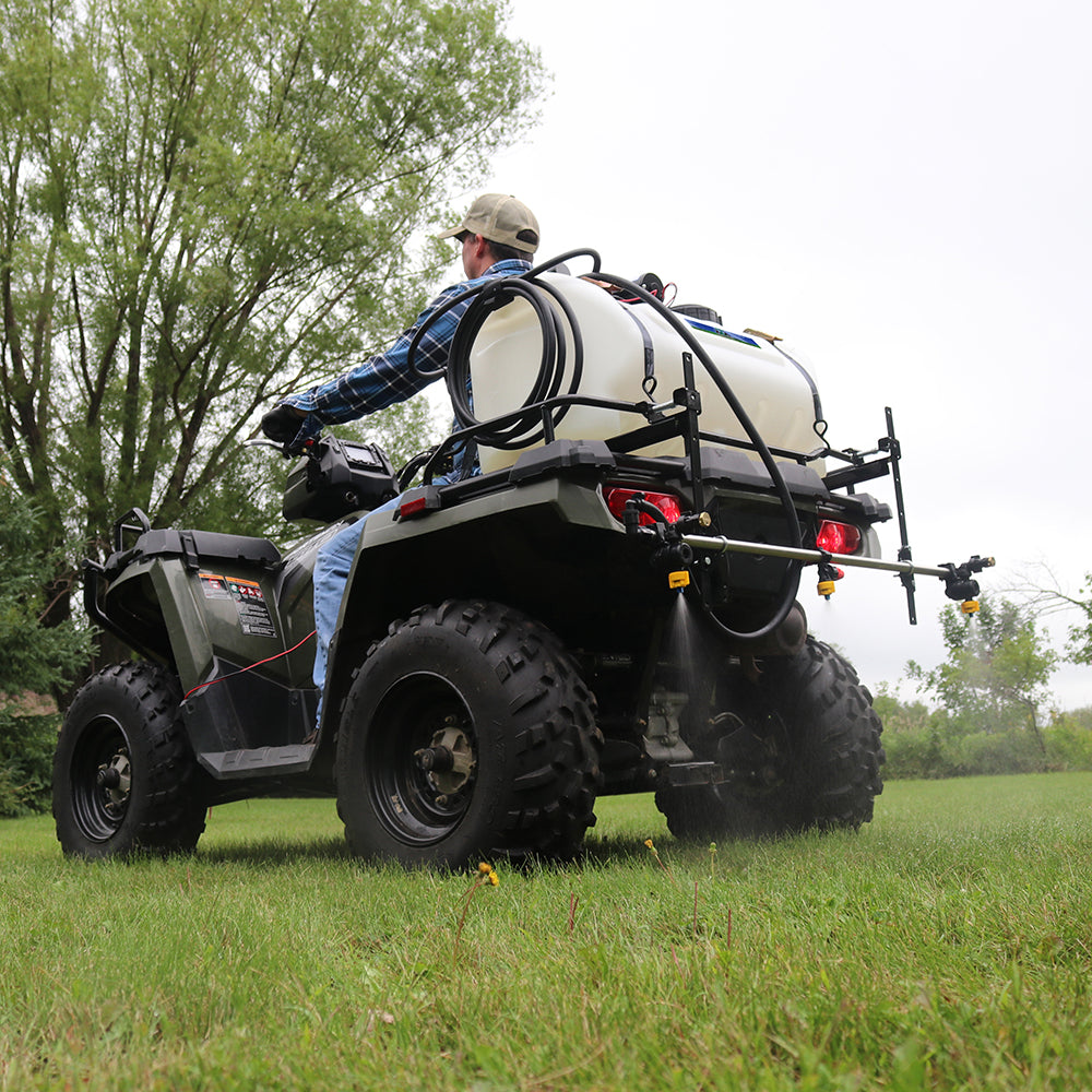 Mount Kit Features: Convert your spot or broadcast sprayer with the Master Manufacturing Universal Quick Attach ATV Mounting Kit. Featuring spring-loaded mounts that allows for quick installation and height adjustment of a broadcast spray boom. Comes standard with two ratchet straps to keep sprayer secure to ATV. Made of heavy-duty, powder-coated steel that provides long-lasting durability against the toughest outdoor elements. Fits most manufactured ATV racks. Backed by a two-year warranty on manufacturing defects.