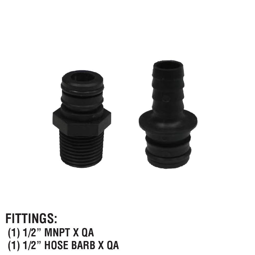 This quick attach pump is loaded with features such as a Honeywell Micro switch, durable Viton valves & Santoprene™ diaphragm, and fiberglass-reinforced polypropylene pump manifold with quick attach ports. Other features include a silky smooth valve design for faster primes and a unique pressure switch that slowly cycles the pump to reduce wear on the motor and switch. Save battery power with the automatic power switch that shuts pump off when no flow is needed. Includes 3/8” hose barb and 1/2” NPT adaptor fittings (boxed version only).