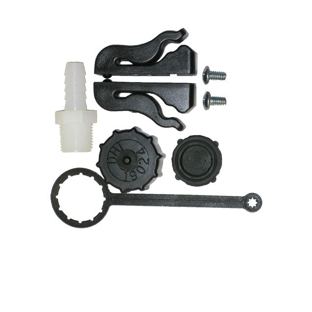 Experience limited downtime with the Valley Industries Universal Sprayer Tank Replacement Kit. This replacement kit includes two spray gun clips, drain plug with gasket, tether and a 3/8" hose barb fitting for 12V diaphragm pumps. Compatible with Master Manufacturing and other branded sprayers.